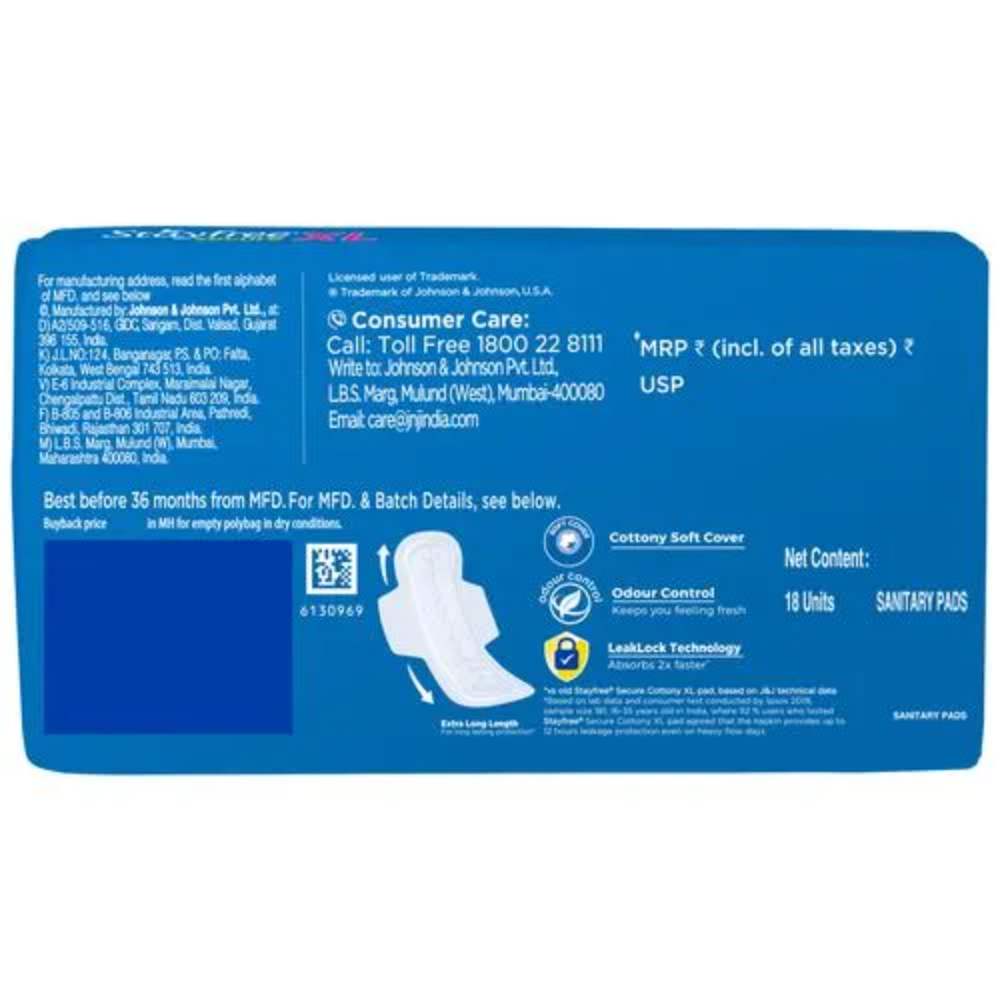 STAYFREE SECURE SANITARY PAD COTTONY COMFORT XL 18P