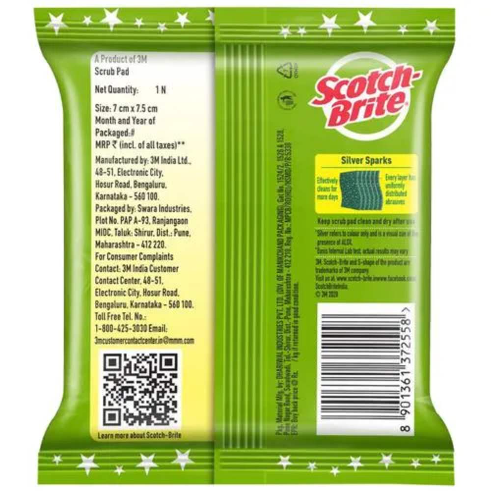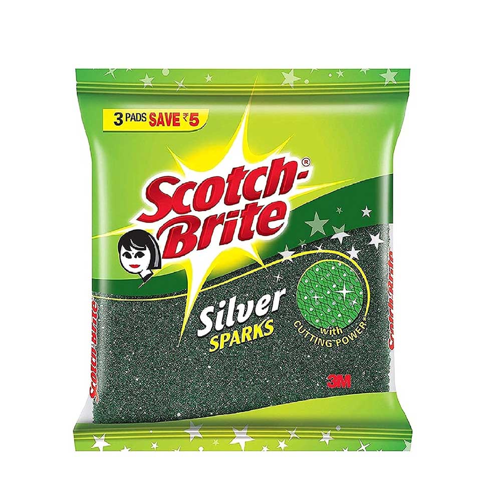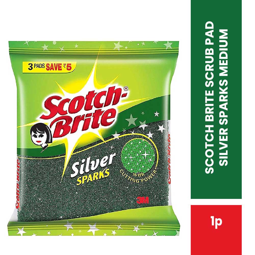 SCOTCH BRITE SCRUB PAD SILVER SPARKS MEDIUM PACK OF 1