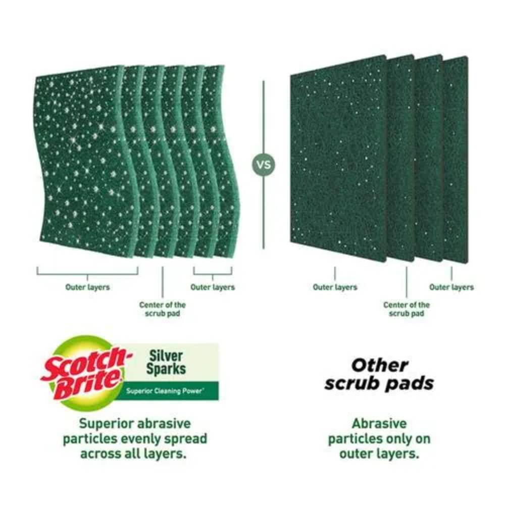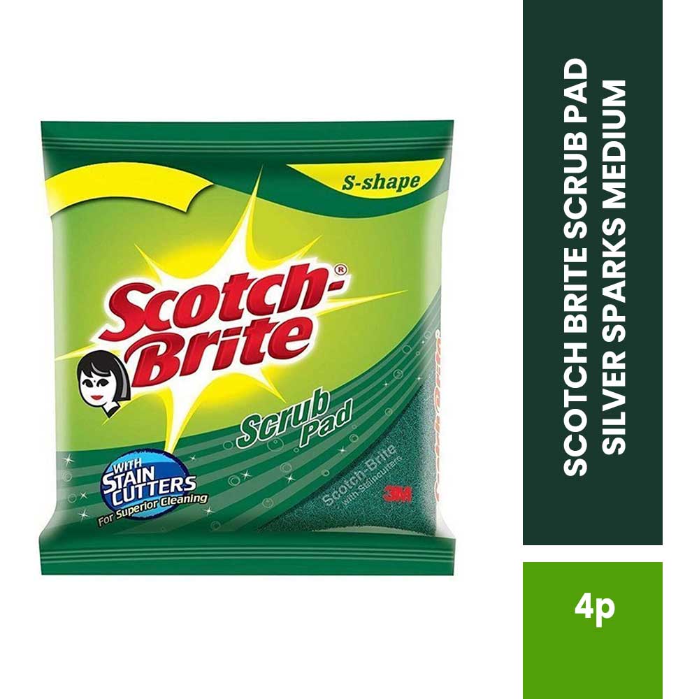SCOTCH BRITE SCRUB PAD SILVER SPARKS MEDIUM PACK OF 4