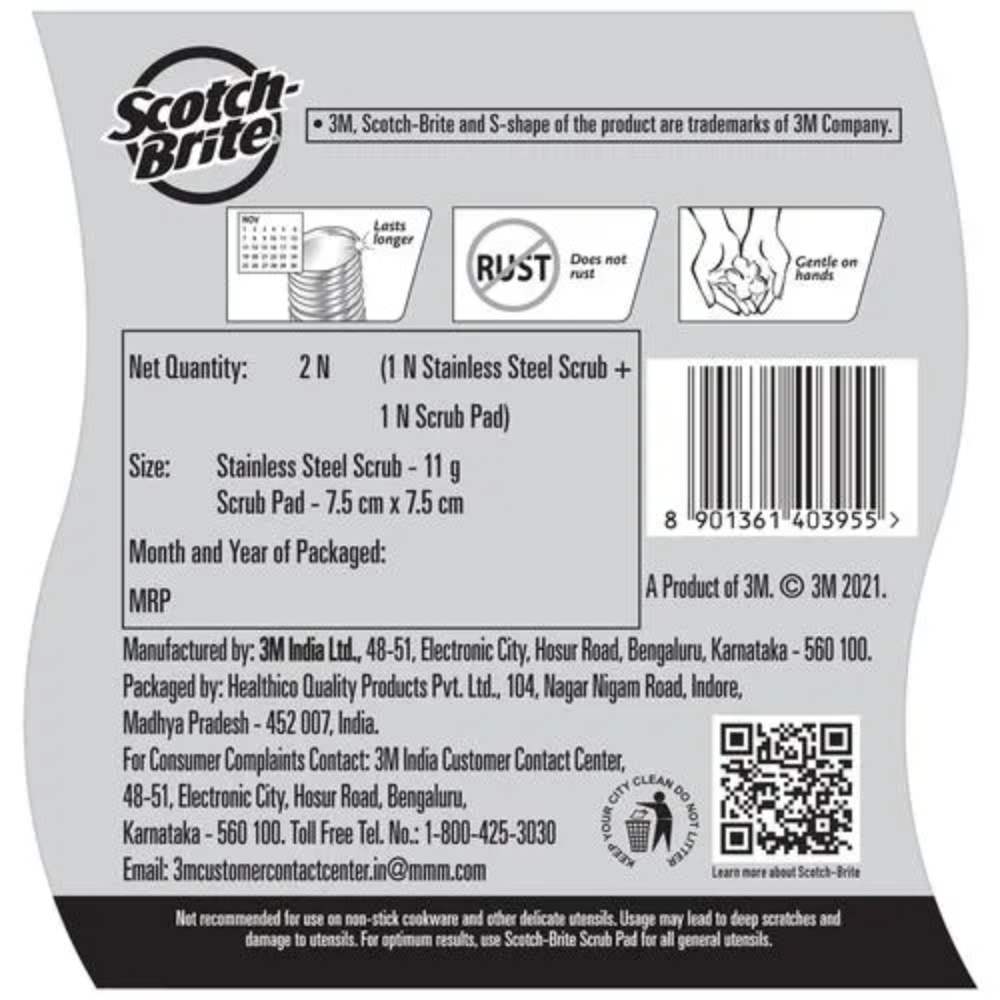 SCOTCH BRITE STAINLESS STEEL & SCRUBBER PACK OF 1