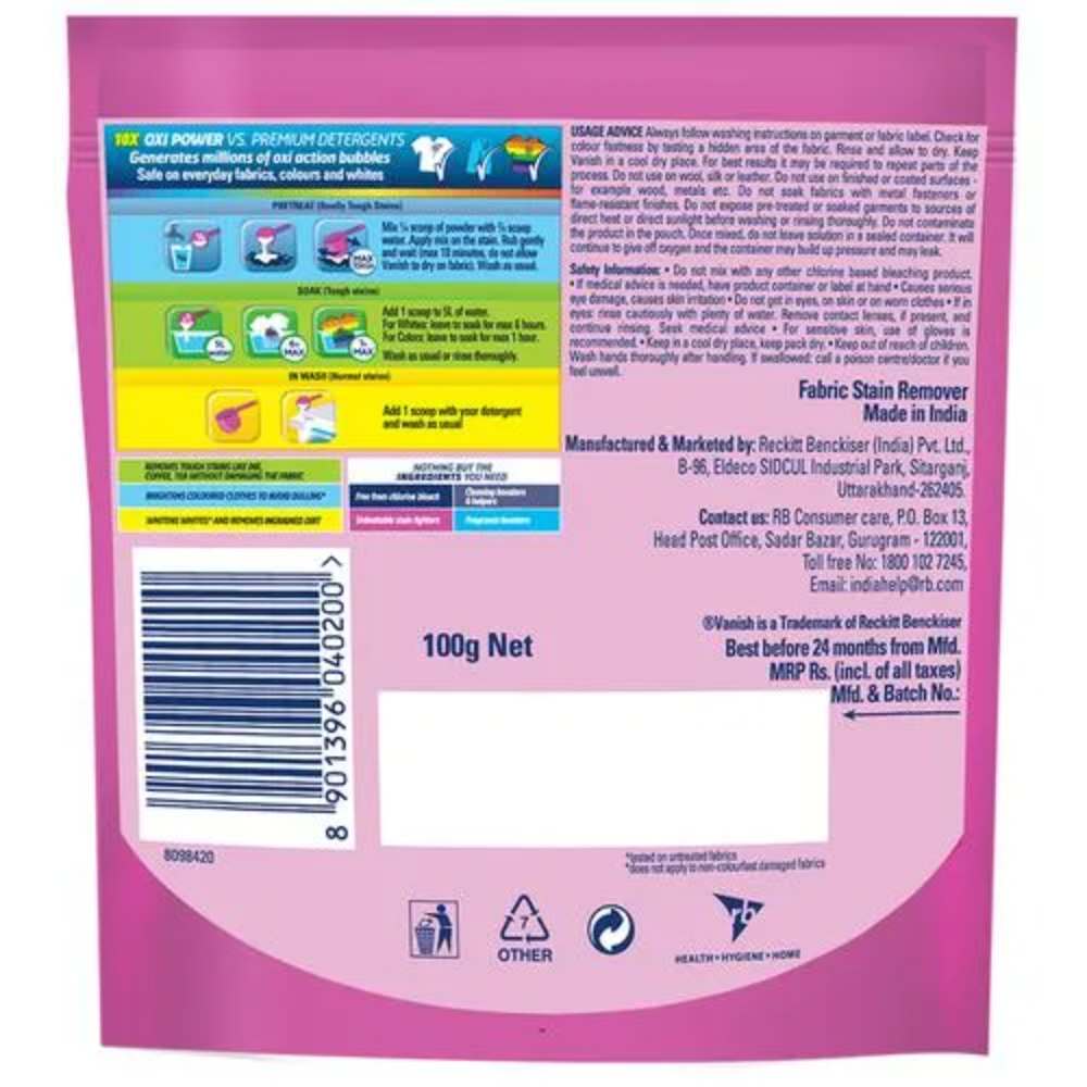 VANISH FABRIC STAIN REMOVER POWDER POUCH 100G
