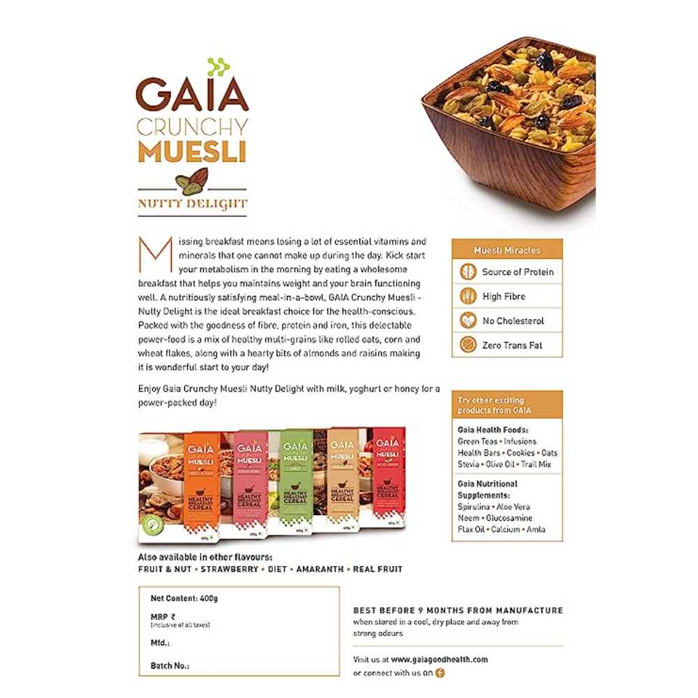 GAIA CRUNCHY MUESLI - NUTTY DELIGHT 400GM