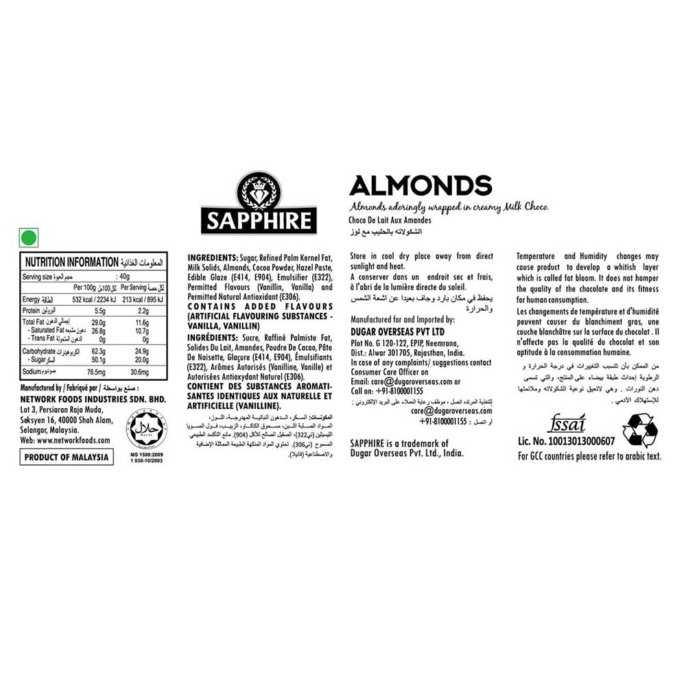 SAPPHIRE CHOCOLATE COATED NUTS 175G