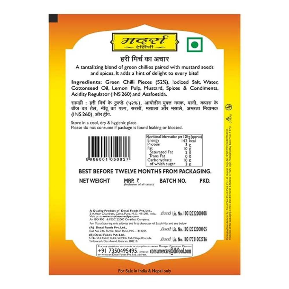 MOTHER GREEN CHILI PICKLE POUCH 200G