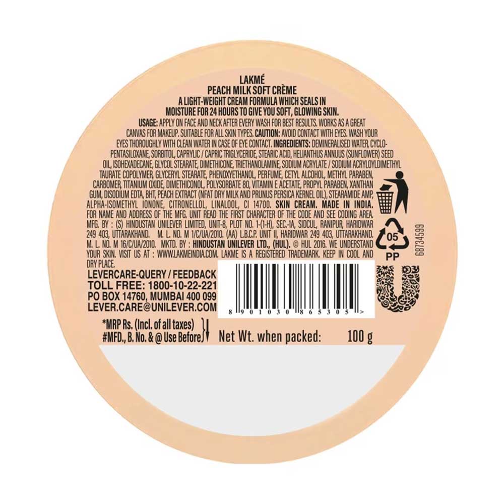 LAKME PEACK MILK SOFT CREME 24HR MOISTURE 100G