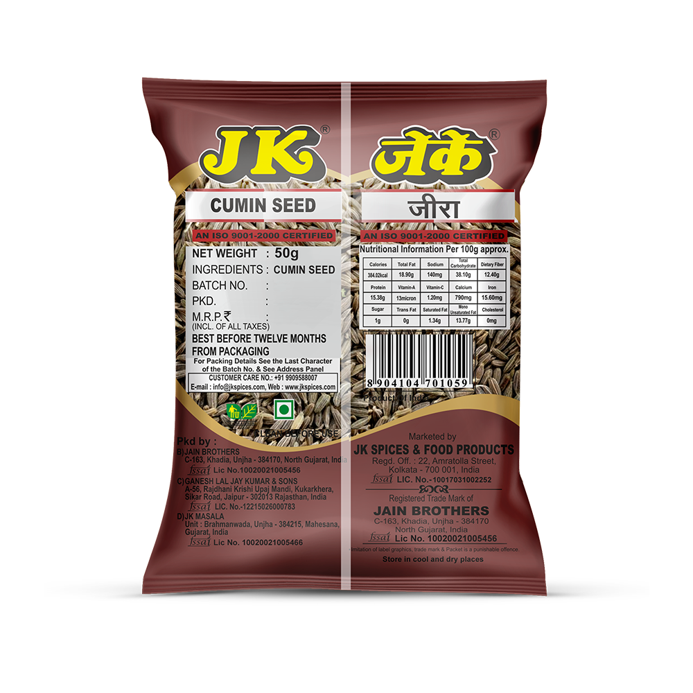 JK JEERA WHOLE POUCH 50G